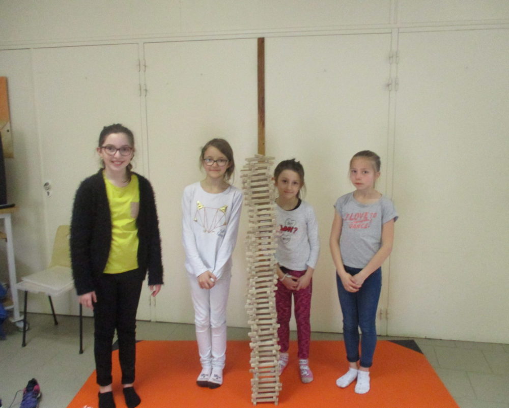 Huit ateliers étaient organisés: un relais déguisé, un parcours d’obstacles, des créations avec des Kaplas, un déplacement avec des échasses, un atelier tennis de table et panier de basket, une balle aux prisonniers, une initiation aux palets et deux jeux dans le jardin de l’école: le Molkky et le lancer d’anneaux (deux diaporamas ci-dessous vous présentent ces ateliers).