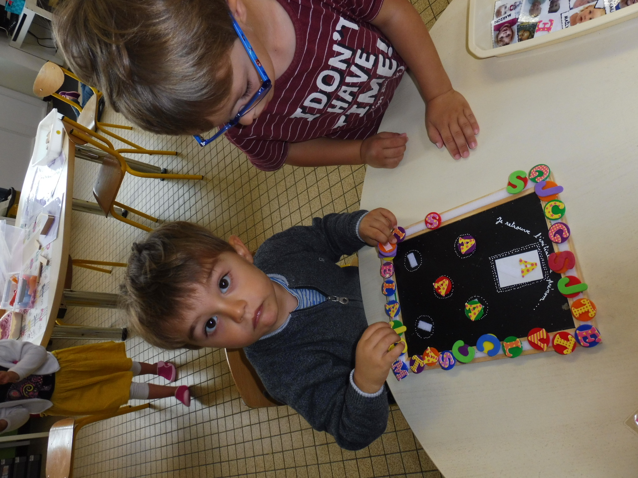 Cette semaine nous sommes allés travailler dans la salle du “langage” (oral et écrit) qui est aussi la salle de classe des élèves de moyenne section.