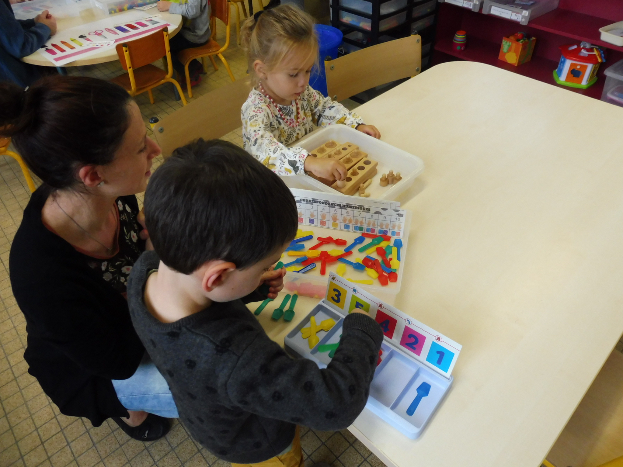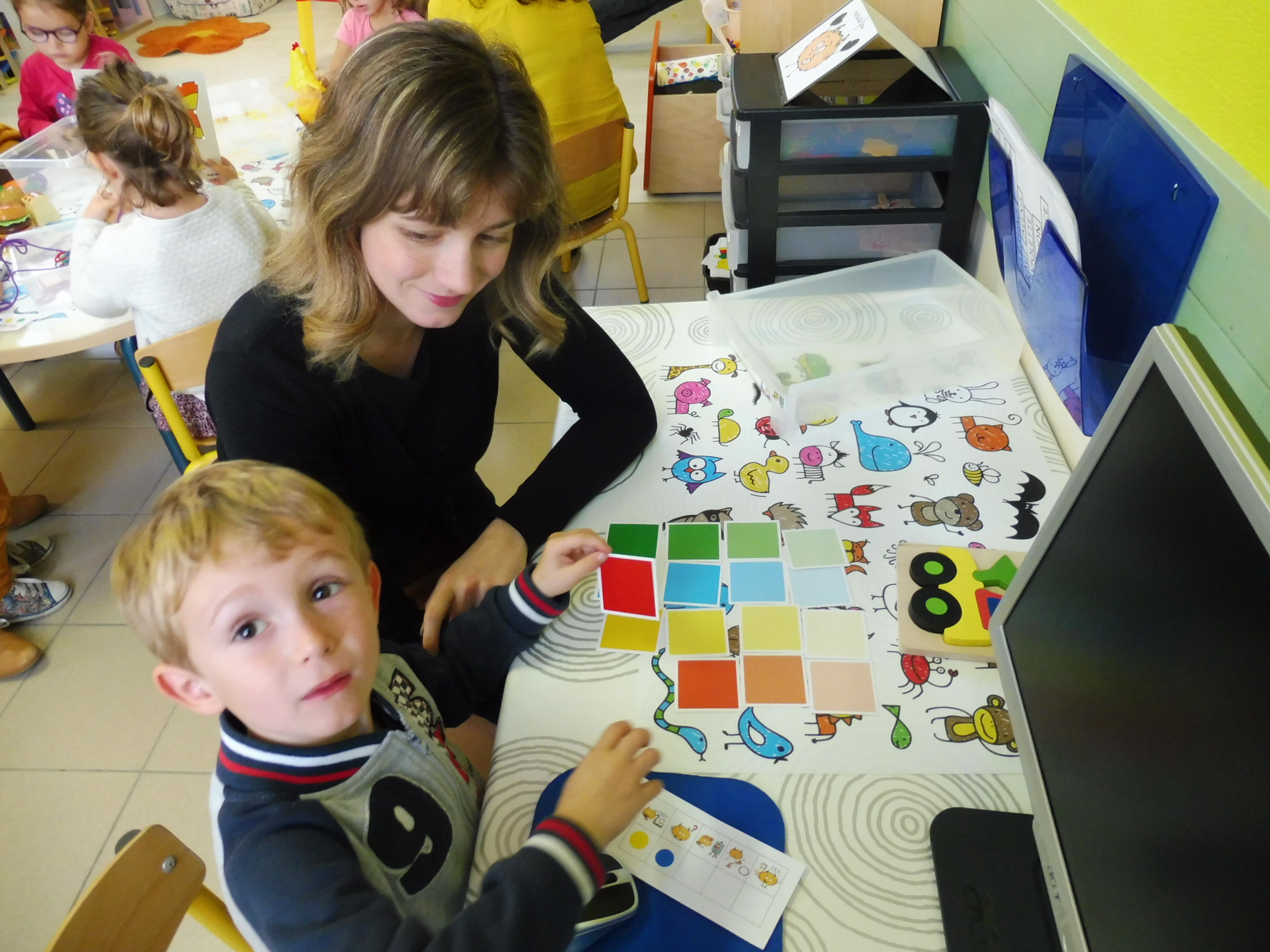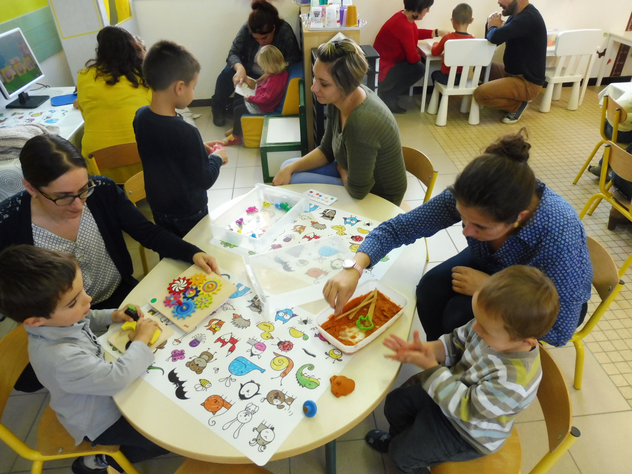 Samedi 13 octobre, nous avons profité de la “matinée école” pour inviter les parents à venir accompagner leur(s) enfant(s) sur son temps de classe. Pendant une heure, les familles ont pu circuler dans les 5 salles correspondant aux 5 domaines d’apprentissage de la maternelle: salle des arts, des sciences, du langage, des mathématiques et du sport. Merci à tous pour votre participation !