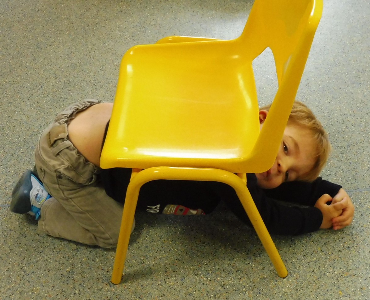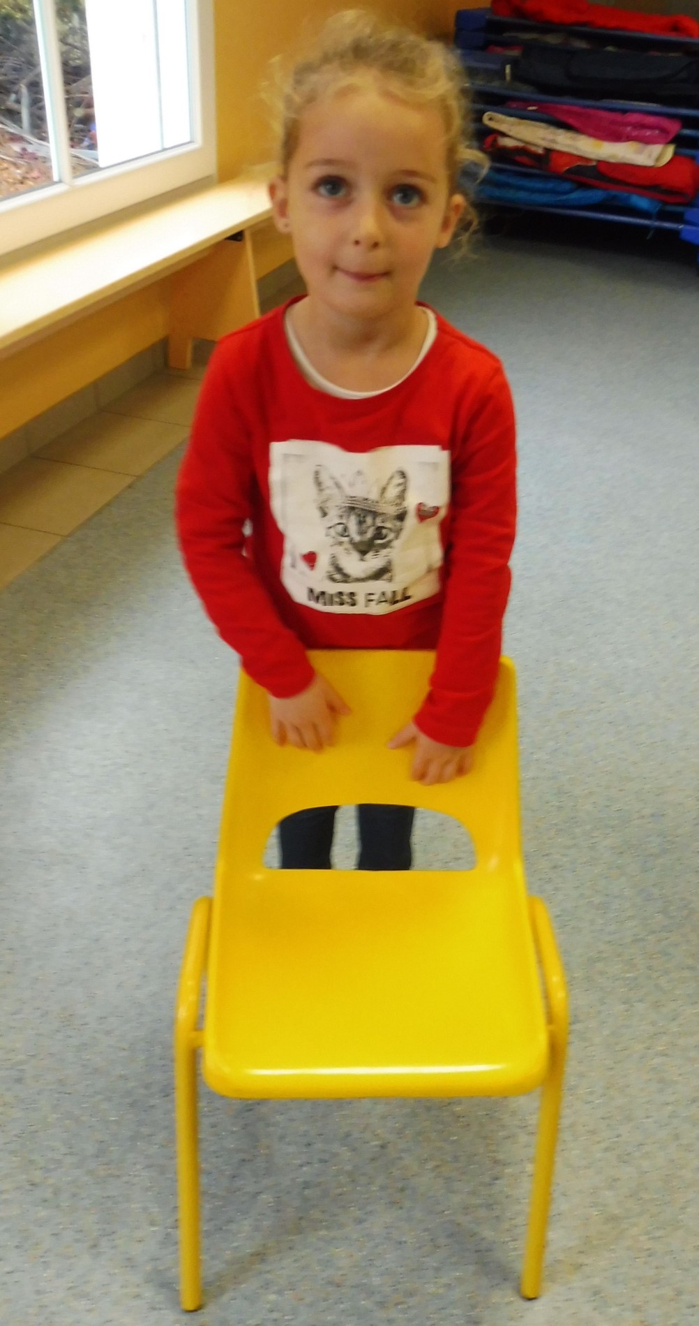 Nous avons travaillé sur les positions spatiales : devant/derrière, dessus/dessous, à côté et entre.