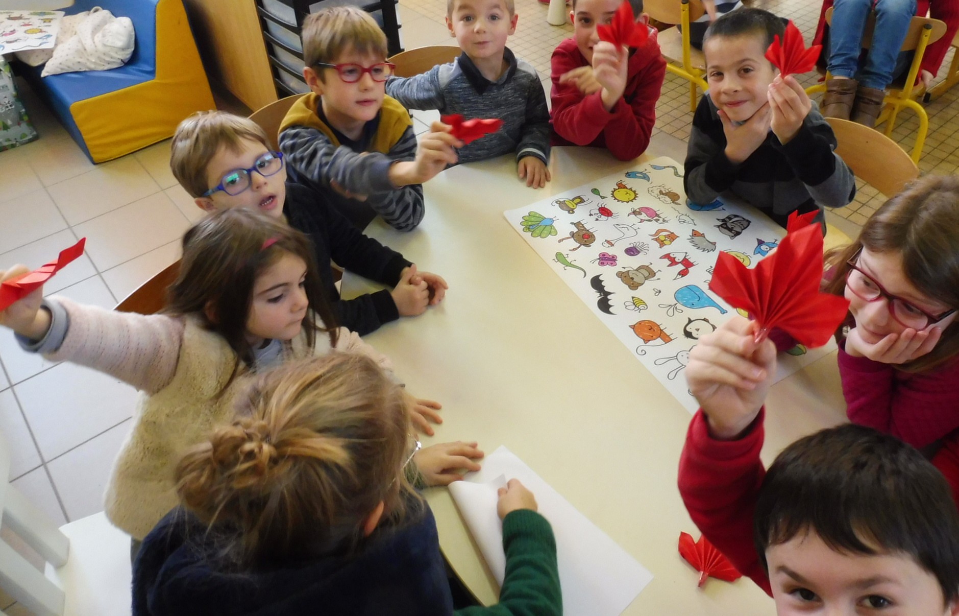 Nous avons préparé tous ensemble une recette américaine de pancakes au sirop d’érable, réalisé des feuilles d’érable en origami et créer des compositions à partir de différentes représentations de ces feuilles. Nous avons identifié des animaux et des monuments du monde. Les élèves de CE1 nous ont raconté une histoire ” De la glace aux pommes de terre” qui se déroule au Pérou avec un petit alpaga.