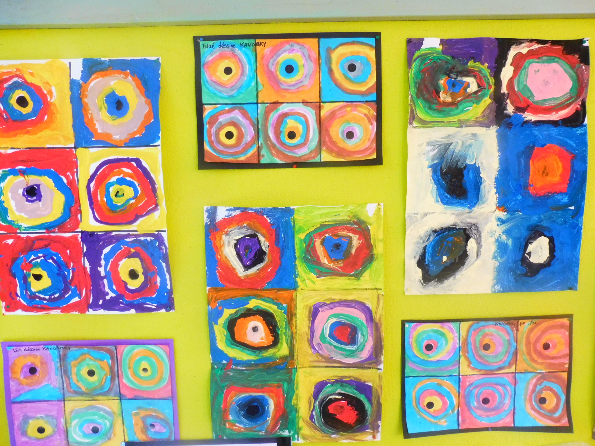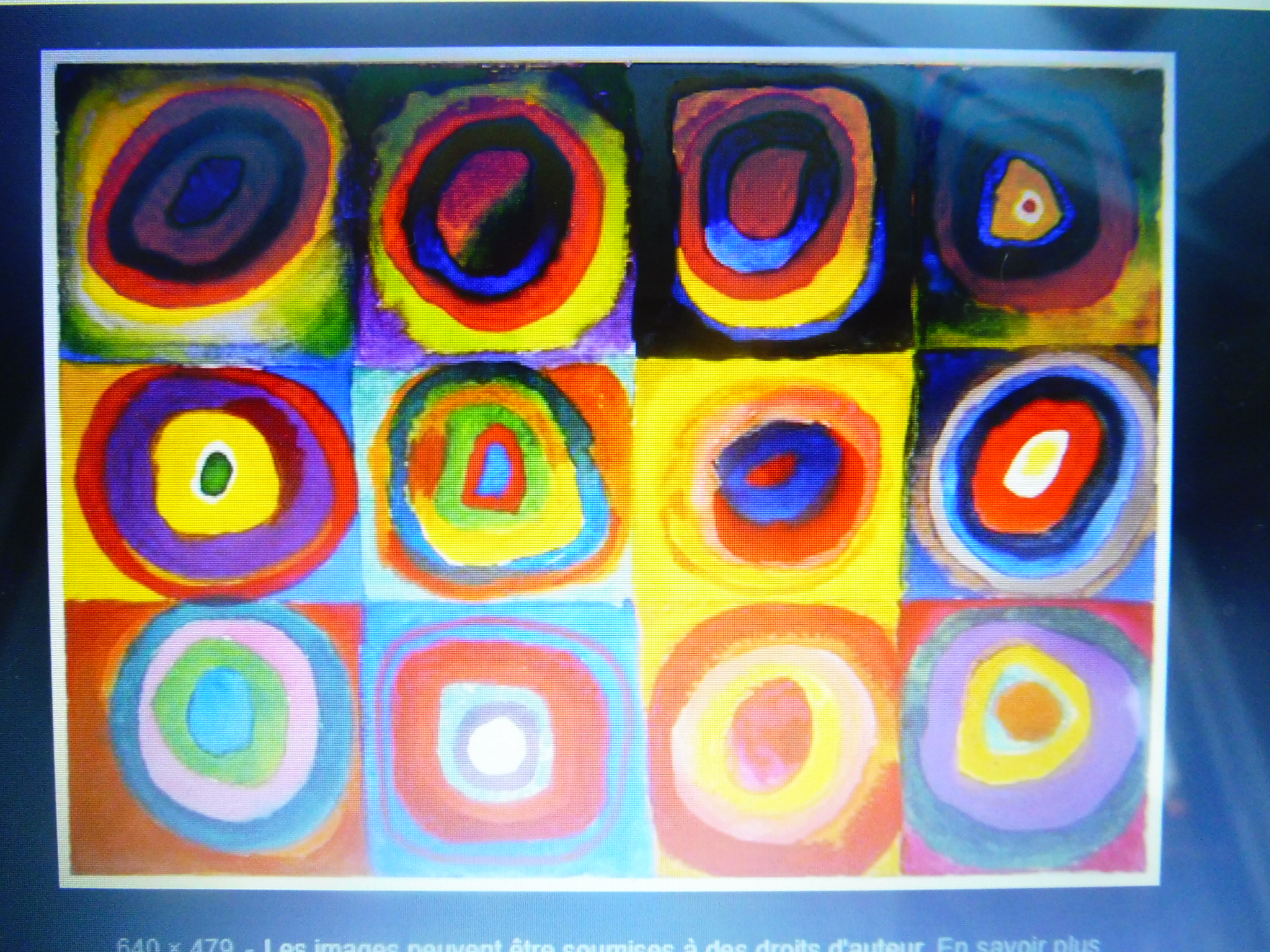 Nous observons les œuvres du peintre russe Kandinsky. Nous apprenons à nommer les formes géométriques et à dessiner les cercles concentriques.