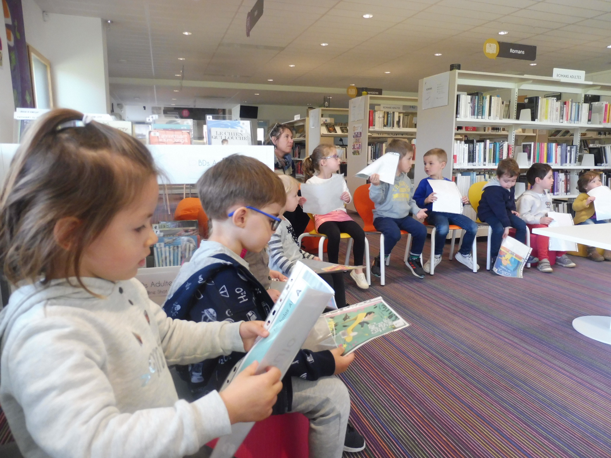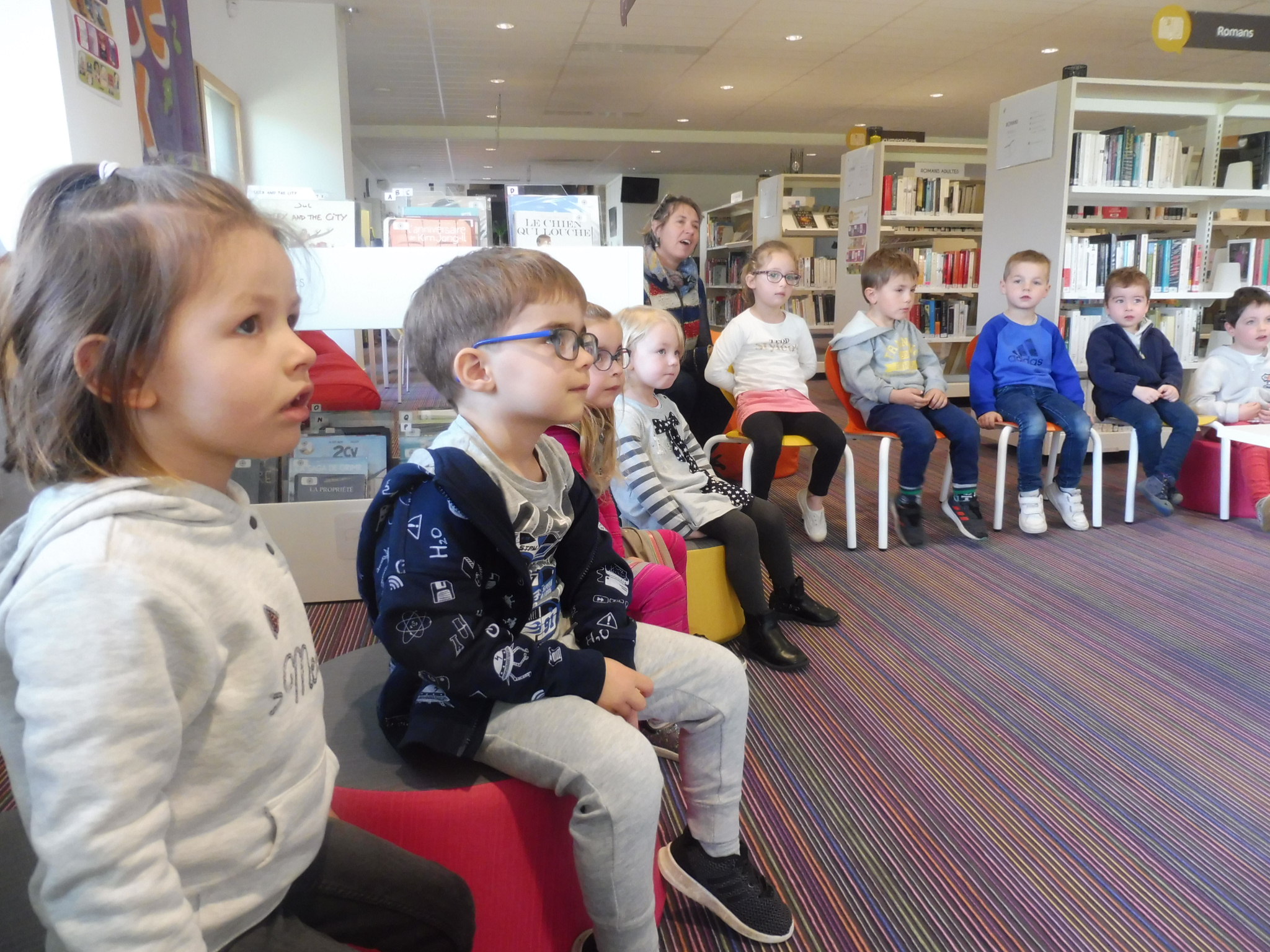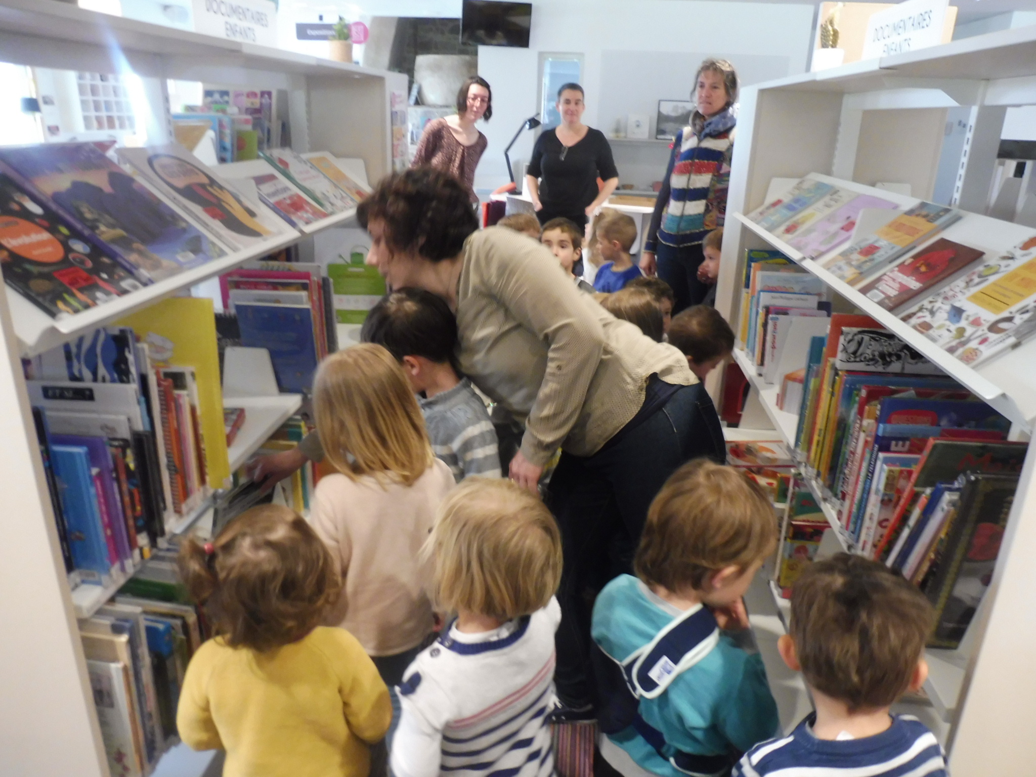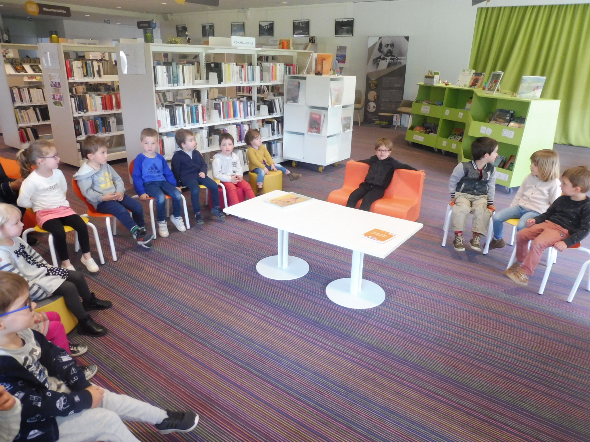 Les élèves de petite section en visite à la médiathèque.
