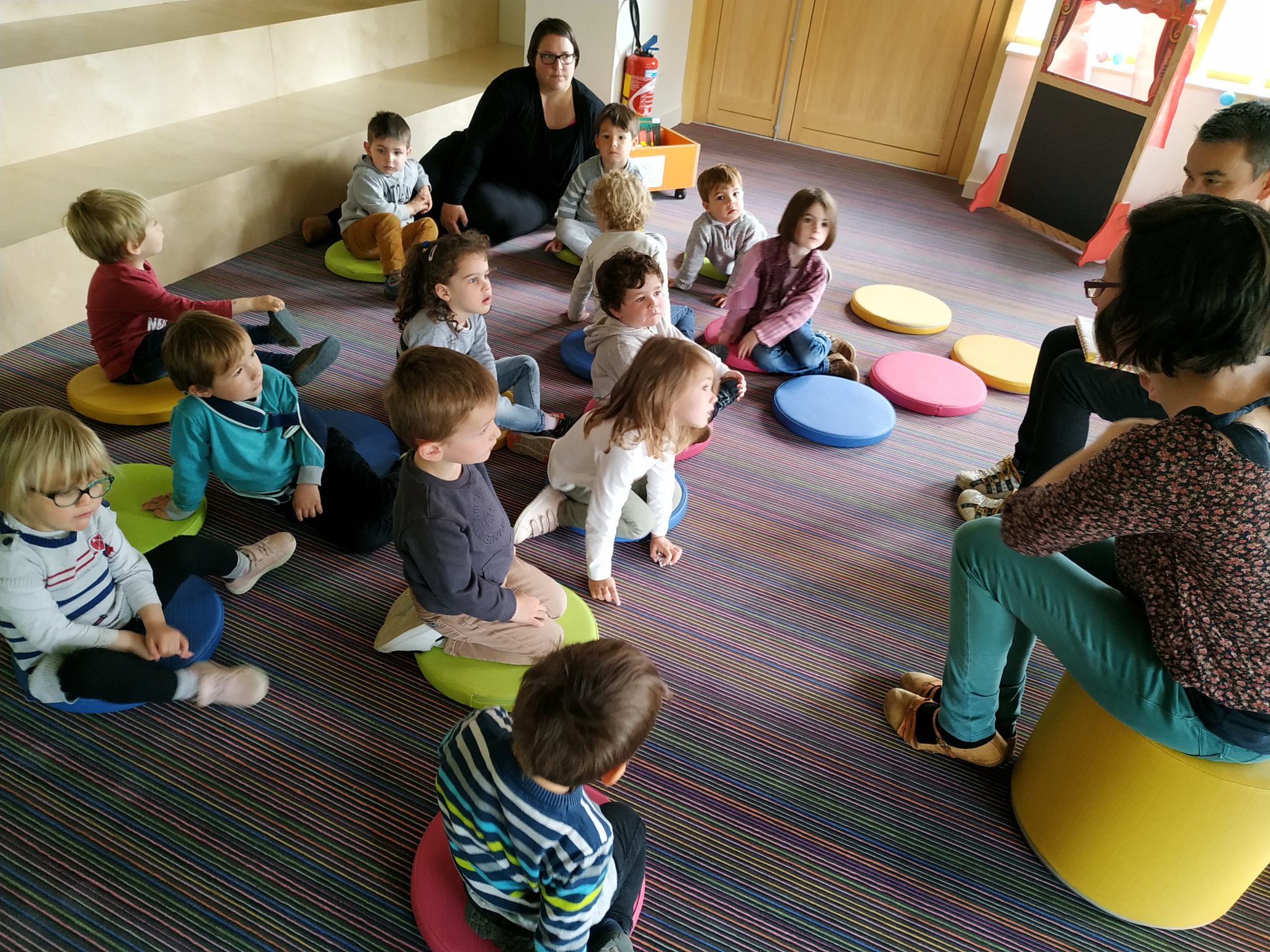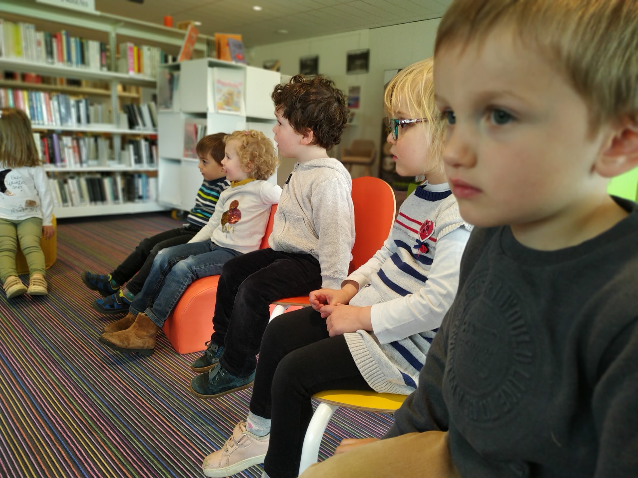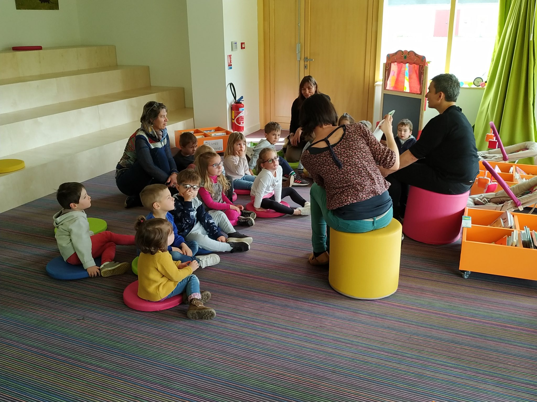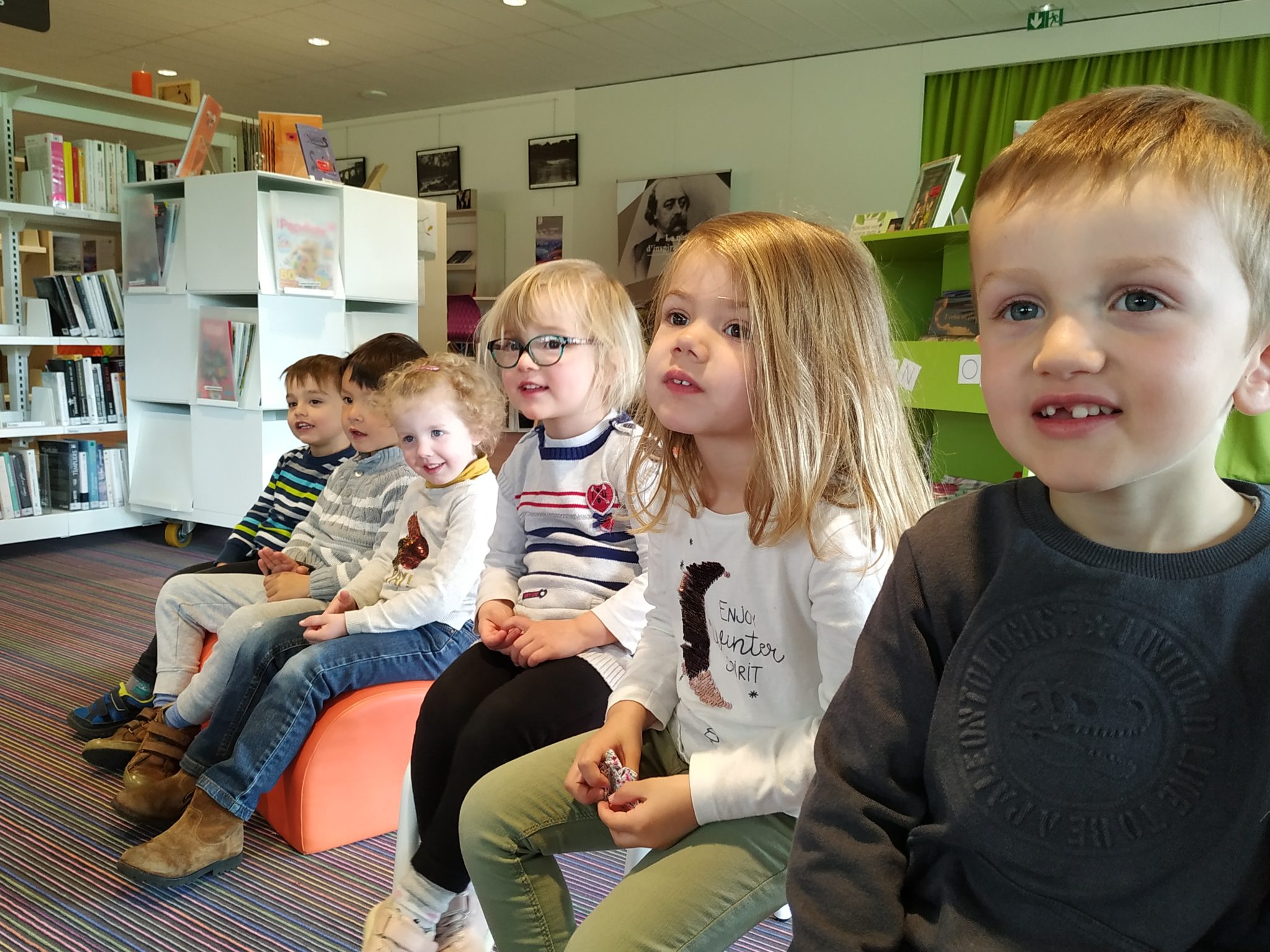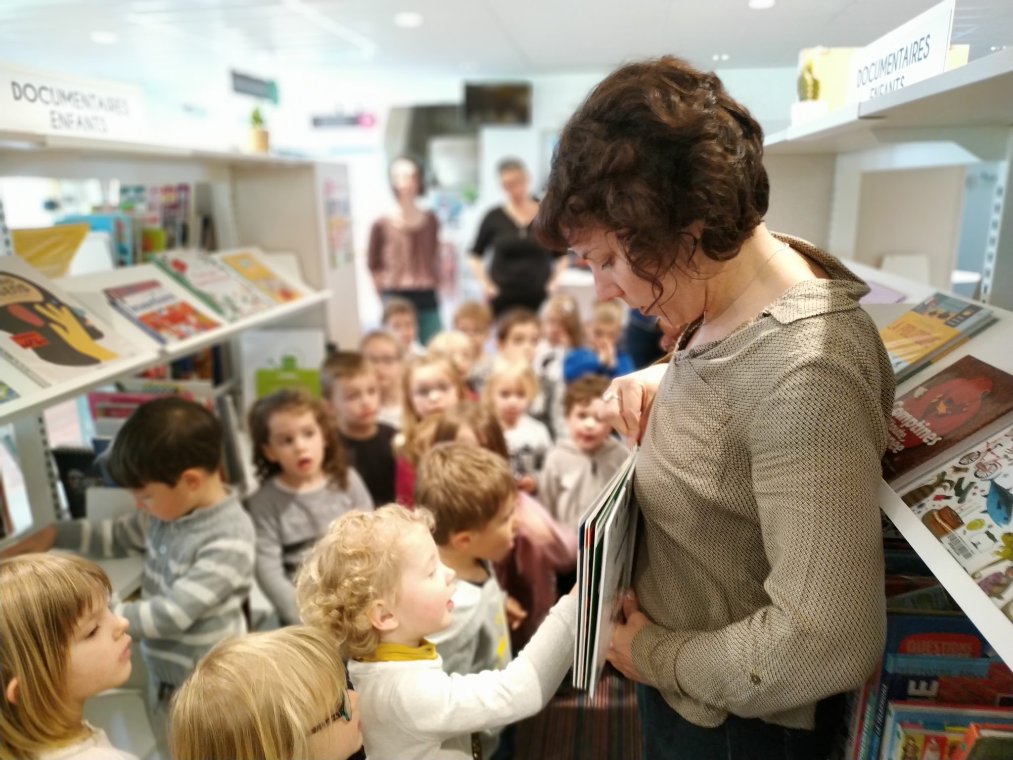 Les élèves de petite section en visite à la médiathèque.