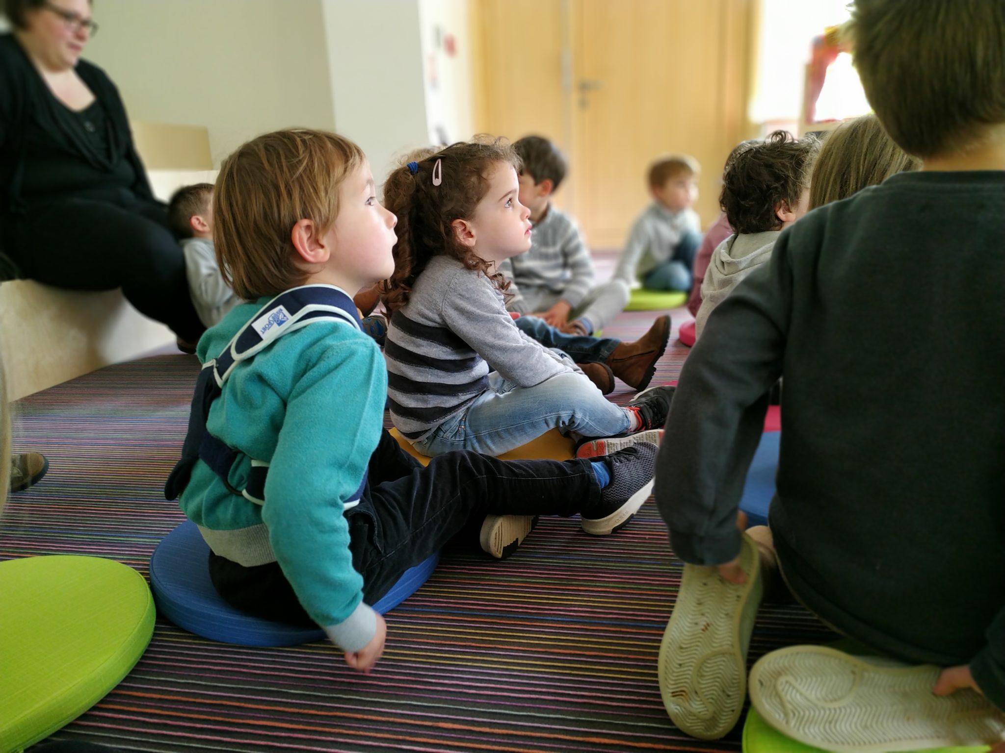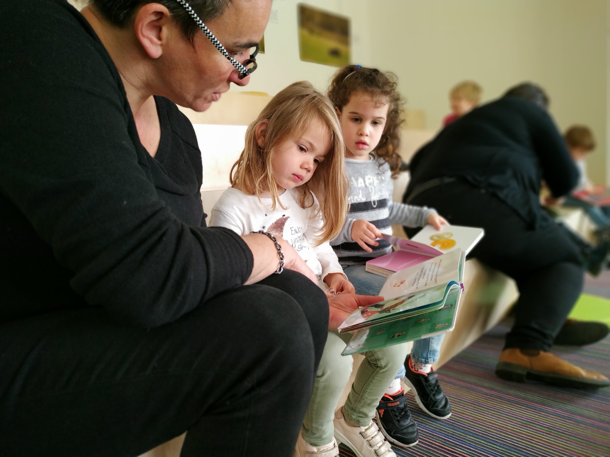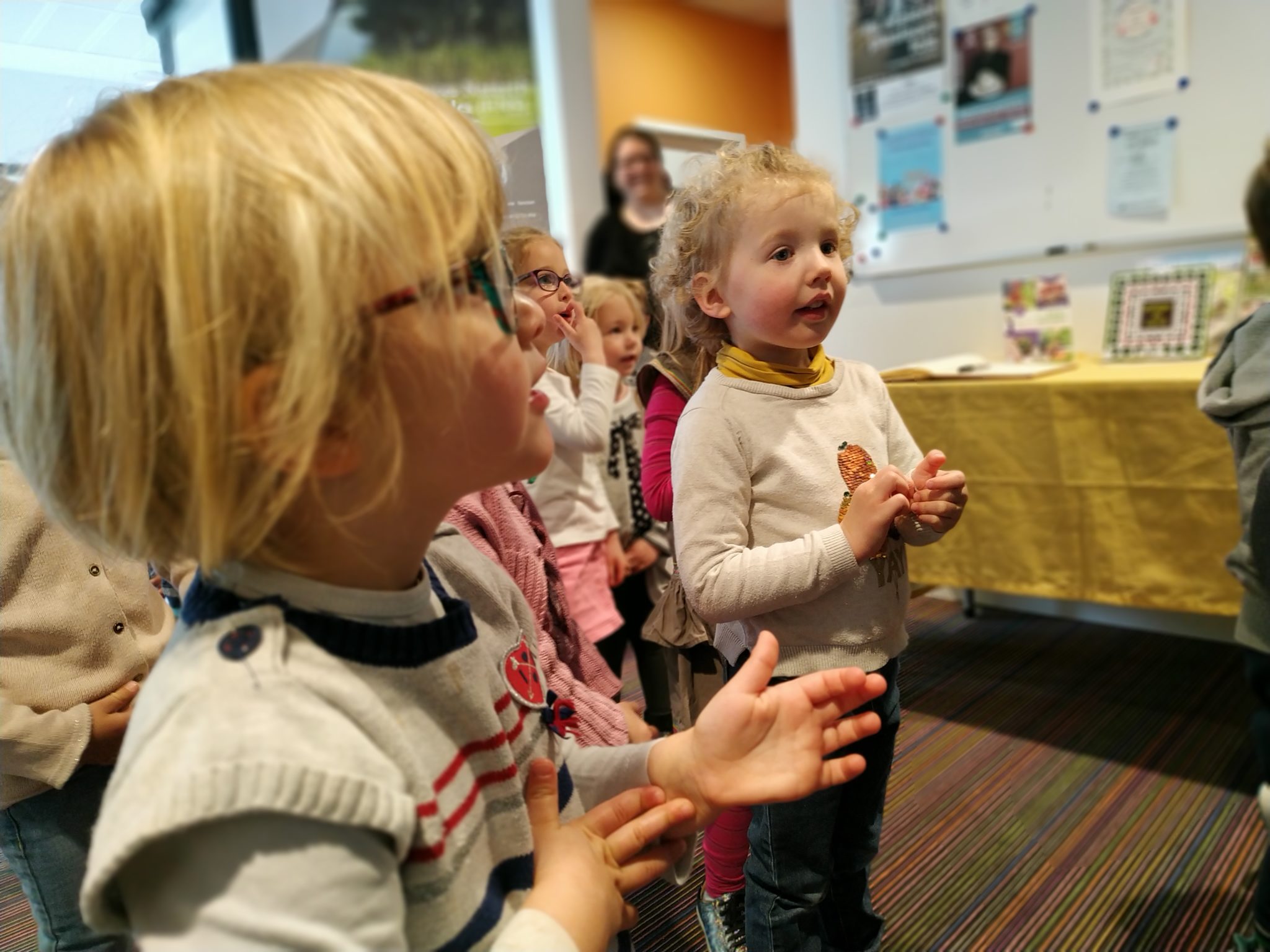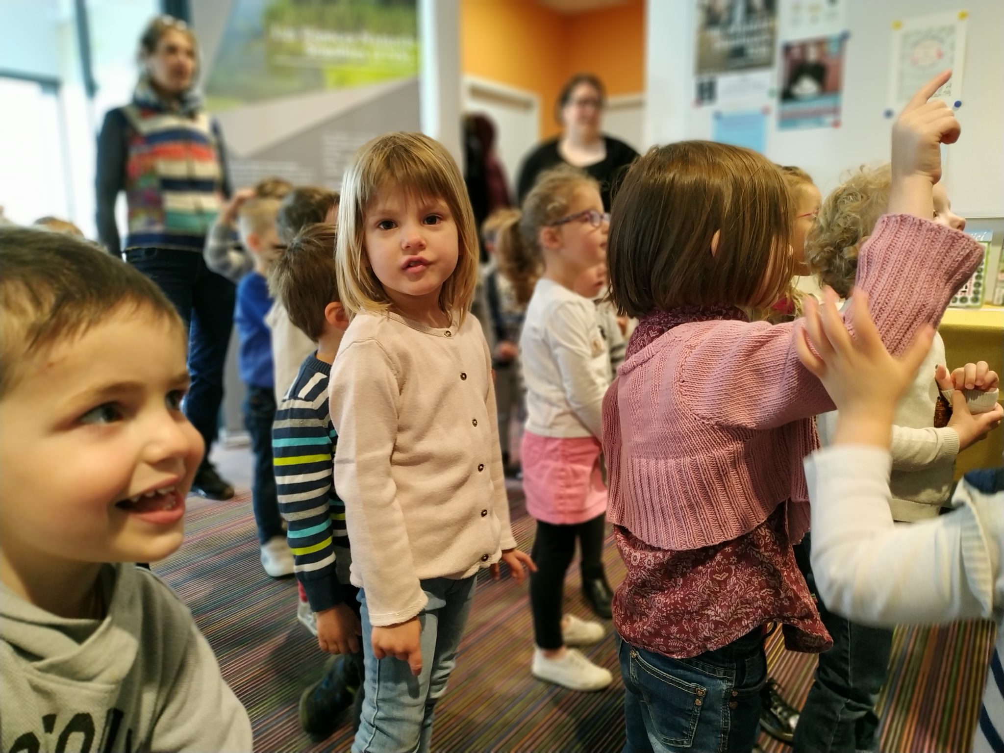 Les élèves de petite section en visite à la médiathèque.