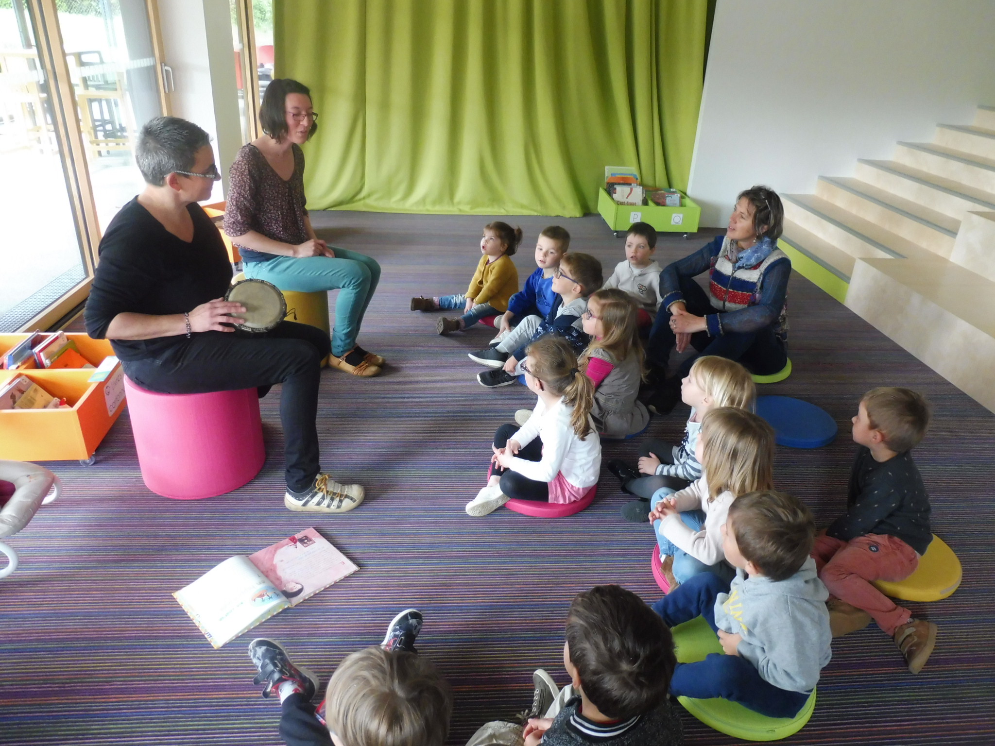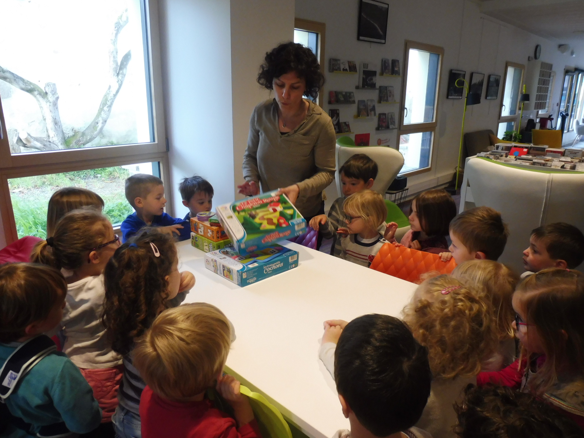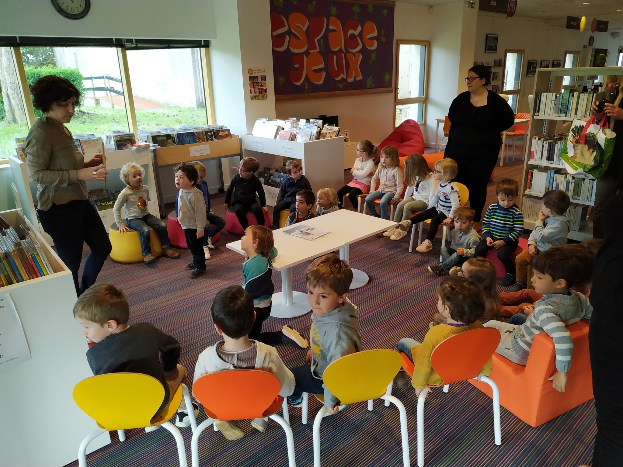 Ce matin, nous sommes allés découvrir (ou redécouvrir pour ceux qui y étaient déjà allés) la nouvelle médiathèque de Cugand.