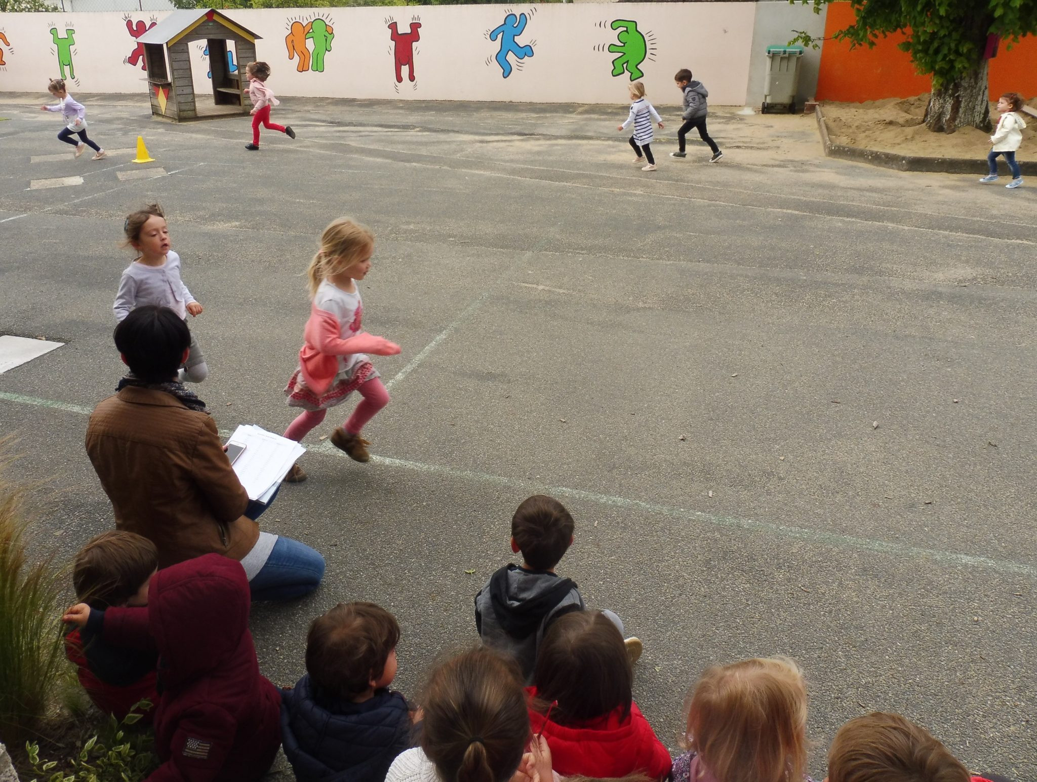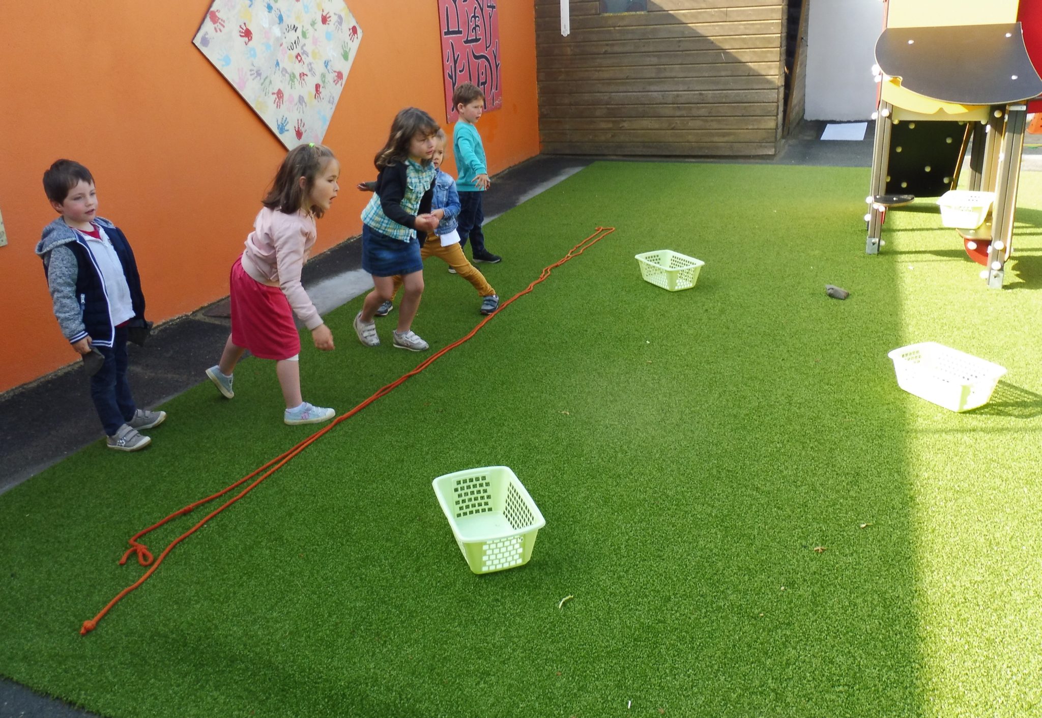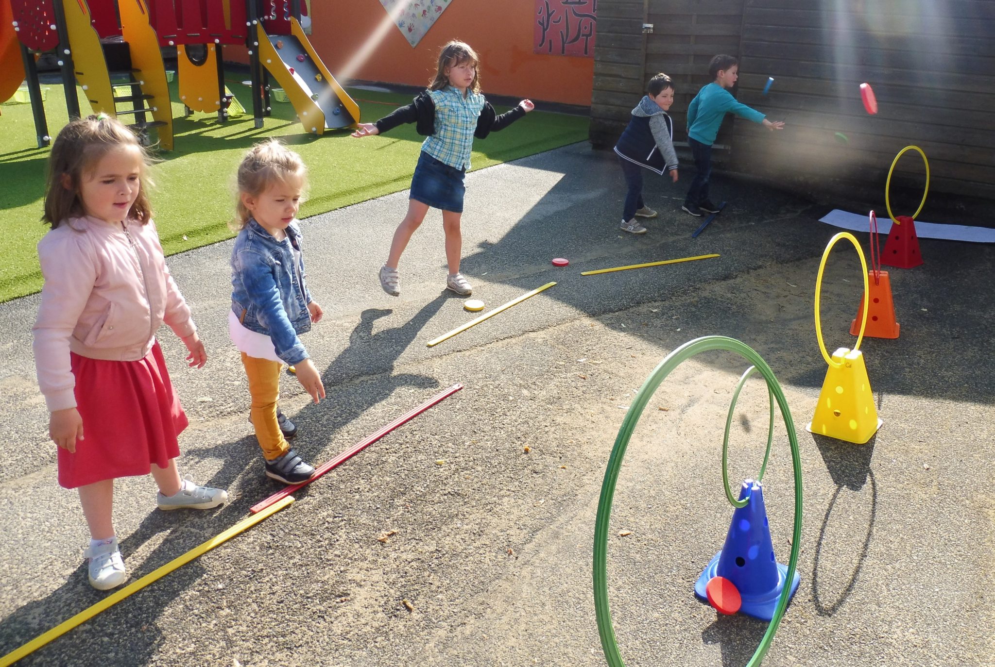 En attendant de débuter les danses qui seront présentées au spectacle de la kermesse, nous avons profité de 7 matinées sans pluie pour faire du sport sur la cour. Des ateliers d’endurance et de lancer (lancer loin, lancer haut, lancer avec précision) nous attendaient.