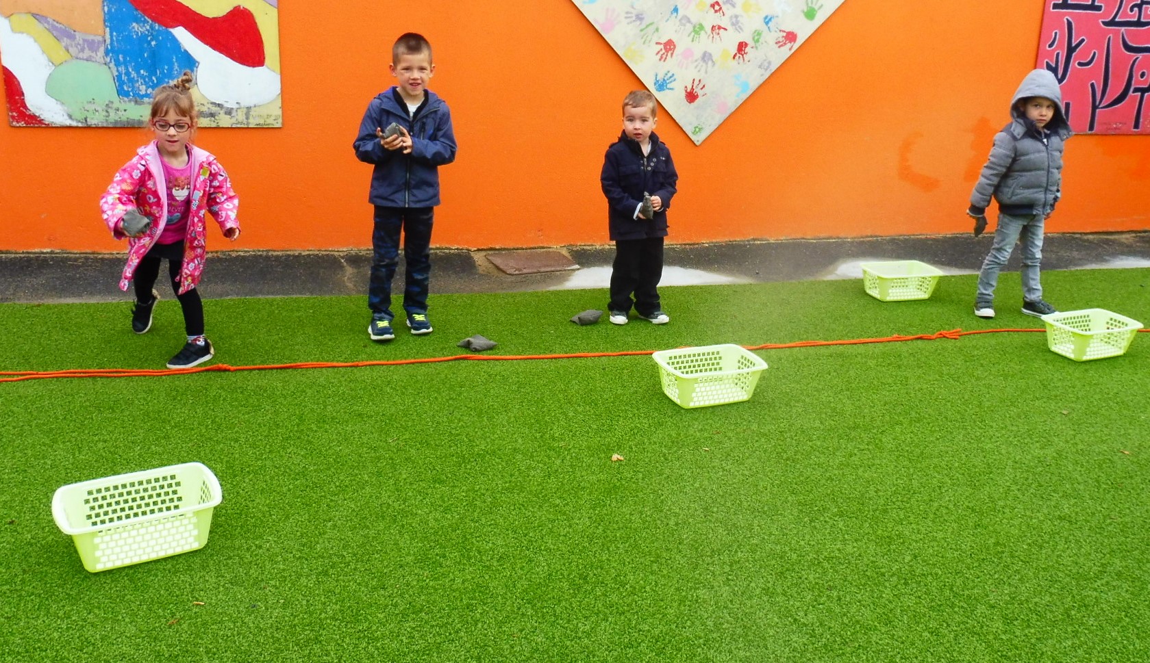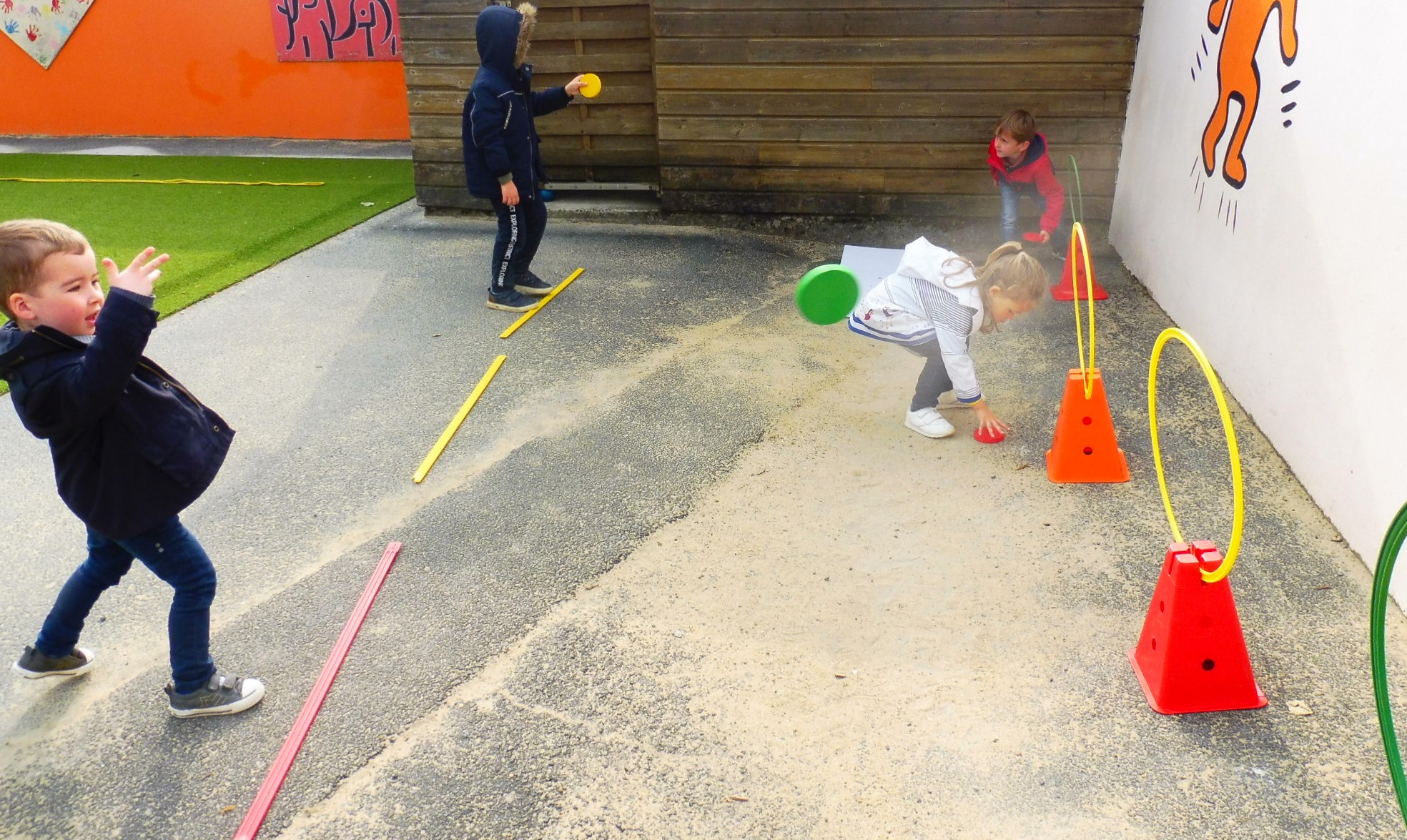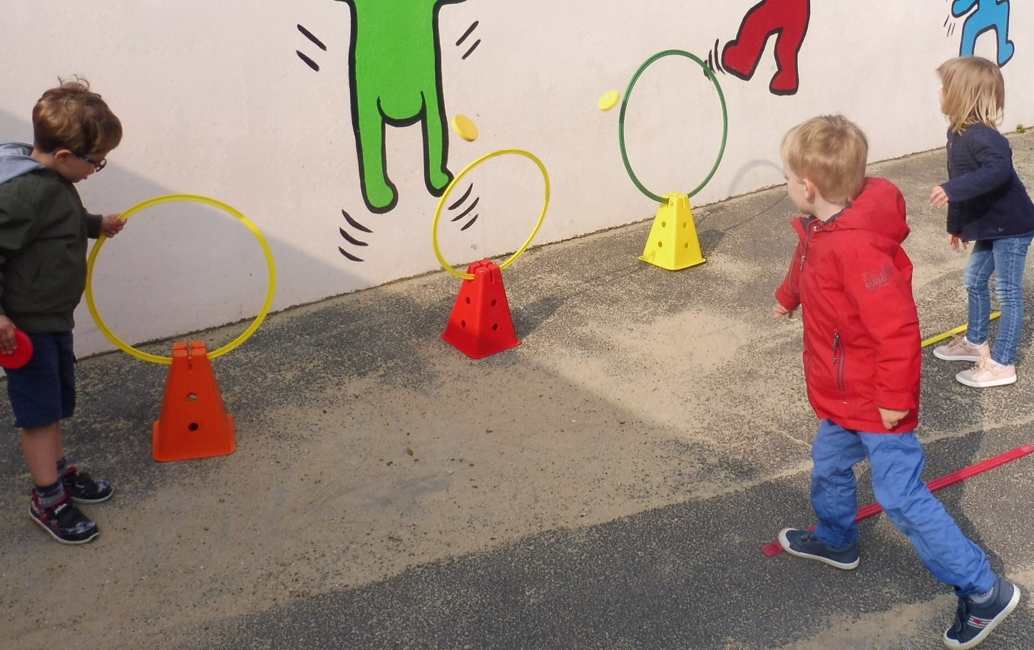 En attendant de débuter les danses qui seront présentées au spectacle de la kermesse, nous avons profité de 7 matinées sans pluie pour faire du sport sur la cour. Des ateliers d’endurance et de lancer (lancer loin, lancer haut, lancer avec précision) nous attendaient.
