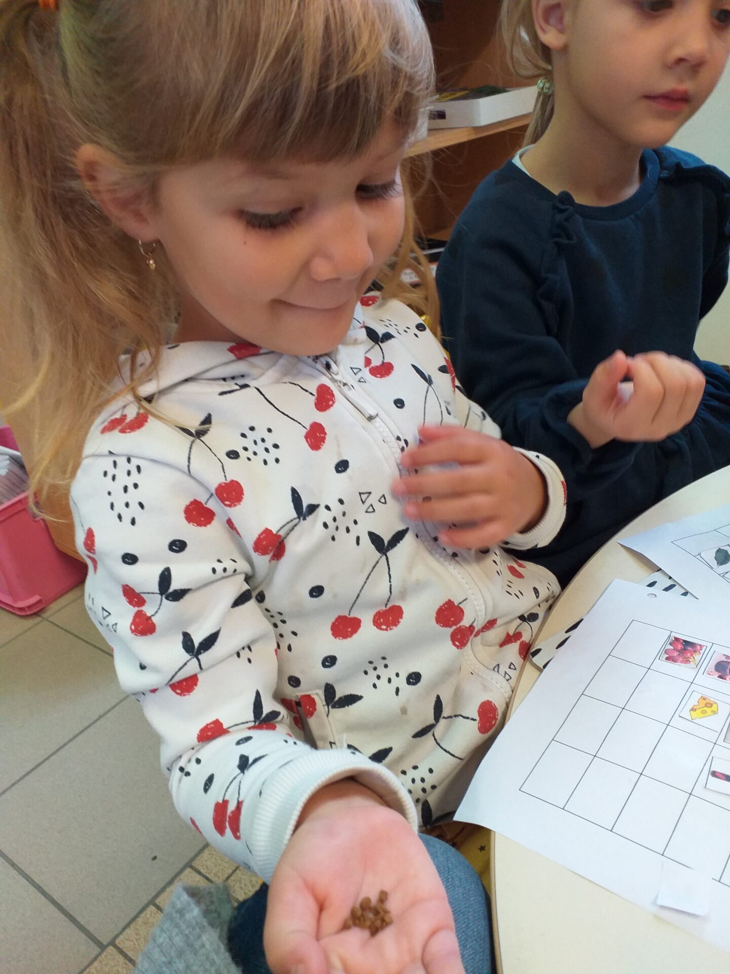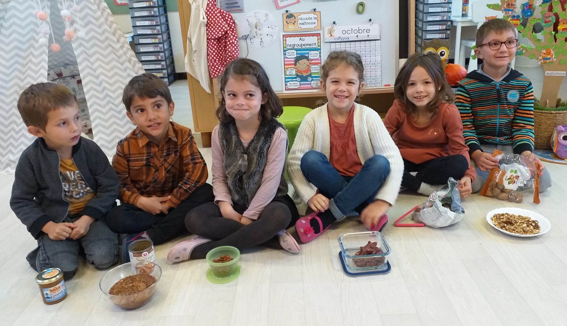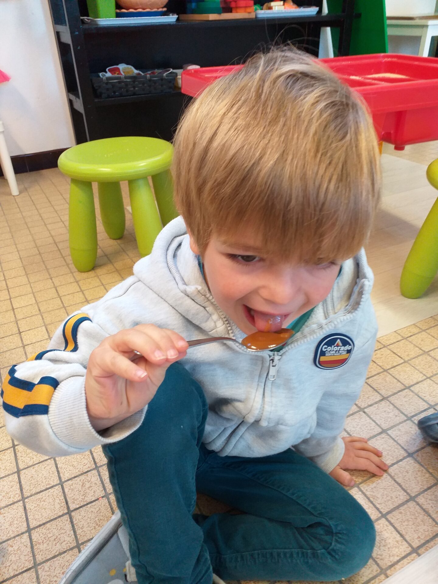 Pour finir, vendredi, nous avions des aliments de la couleur marron à découvrir : caramel, saucisses lentilles, amandes, boudin noir et noix !