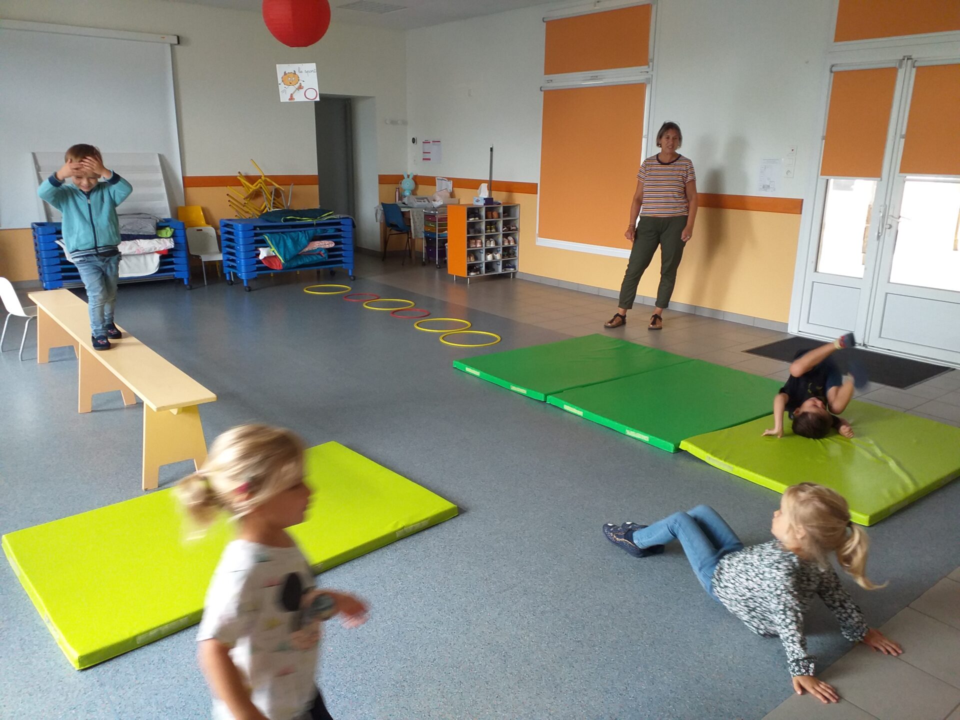 Nous sommes heureux de pouvoir circuler dans nos 5 salles d’apprentissages : salle des arts, salle des sciences, salle des mathématiques, salle du langage et salle de sport.