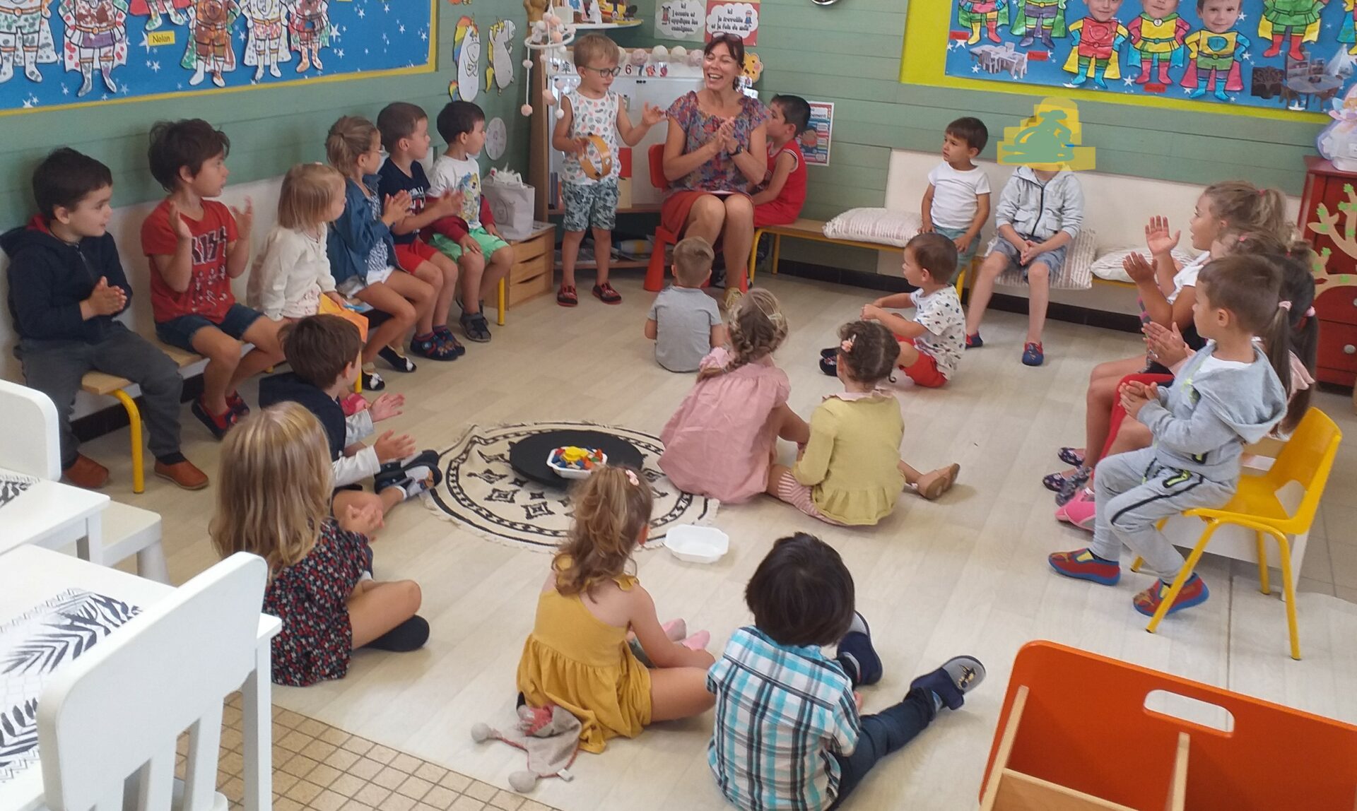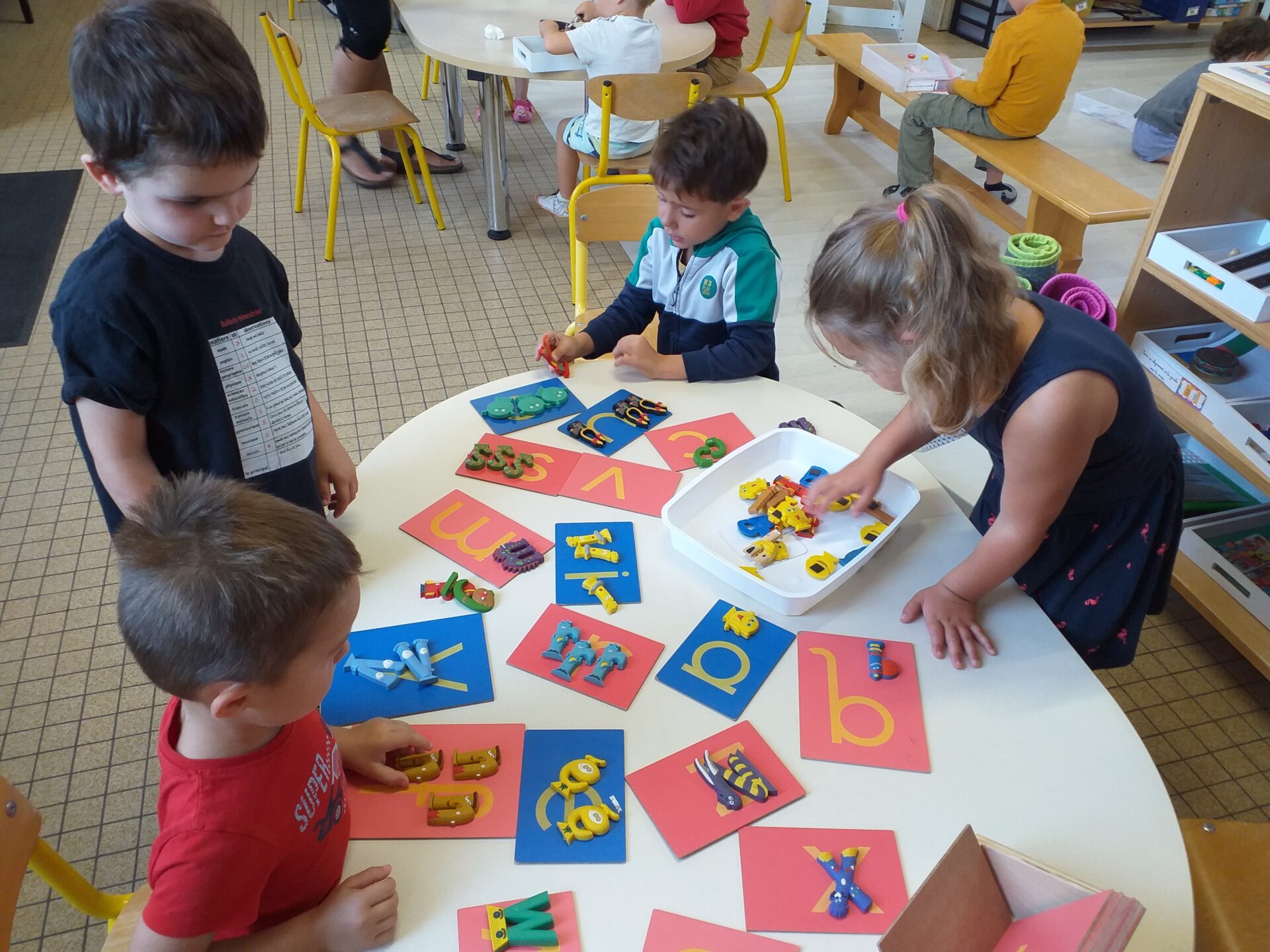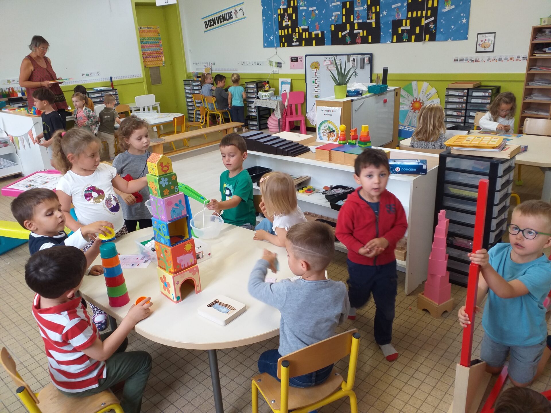 Nous travaillons en “classes ouvertes” avec nos camarades des deux autres classes de maternelle.