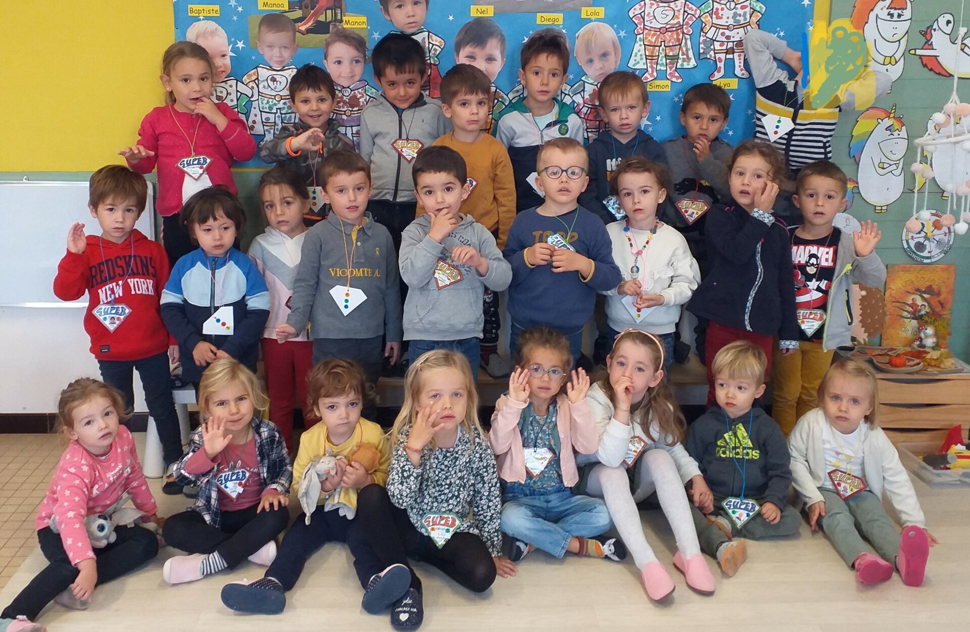 Voici notre classe “C1” composée de 25 élèves à la rentrée (11 filles, 14 garçons, 5 élèves en GS, 11 élèves en MS et 9 élèves en PS).