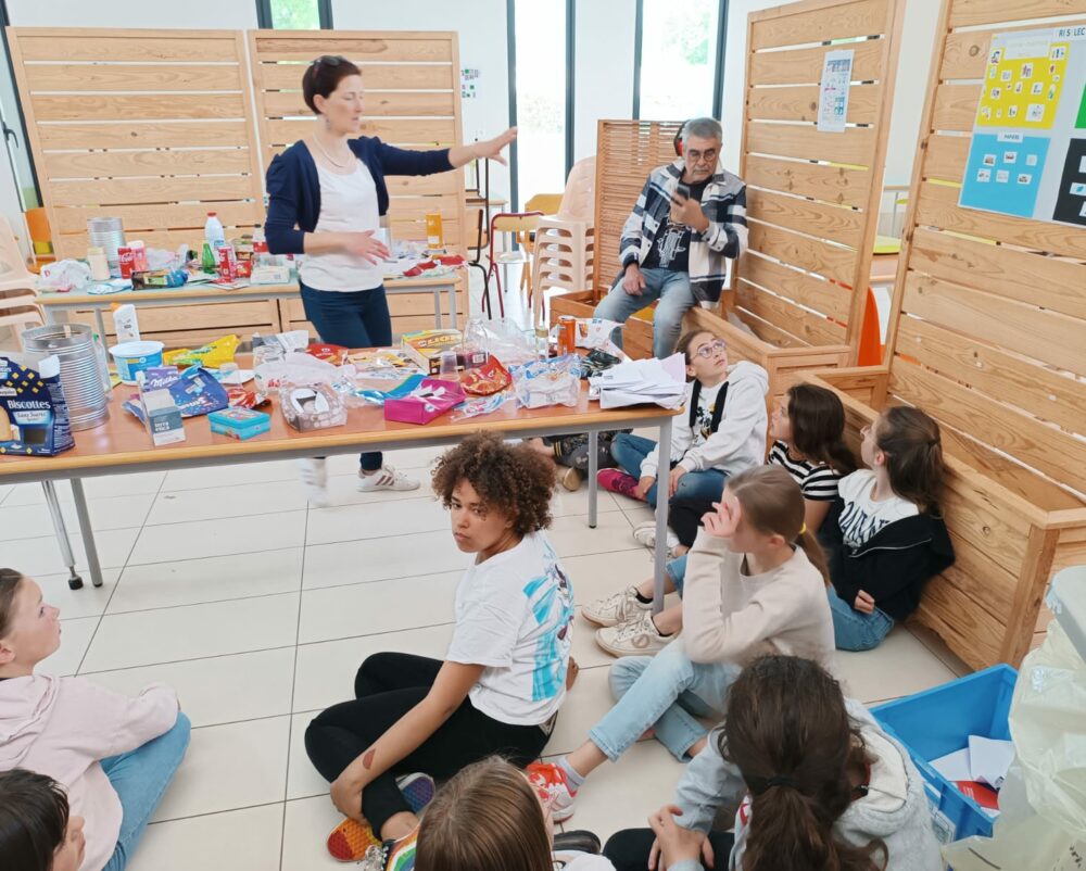 De retour à l’IME, nous avons pique-niqué tous ensemble sur leur immense cour enherbée. Puis tous ceux qui le souhaitaient ont pu jouer au foot ou rester discuter en petits groupes : ce fut un moment très riche en échanges. Les élèves de l’Ecole Jean Moulin nous ont raconté l’album “Voyage à poubelle plage”.