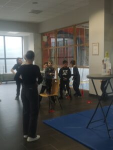 Le matin, les élèves étaient répartis en groupes et sont passés dans divers ateliers : loto adapté avec des symboles, théâtre, loto des odeurs où il fallait retrouver les parfums et boîtes dont il fallait deviner le contenu par le toucher, découverte de la salle Snozelen (salle de relaxation) qui a eu un gros succès auprès des enfants ainsi que découverte du baskin (sorte de basket adapté).