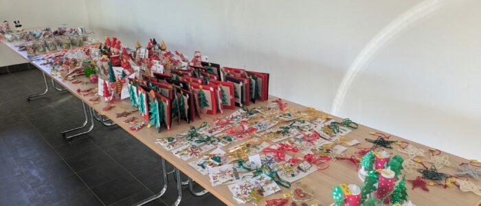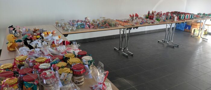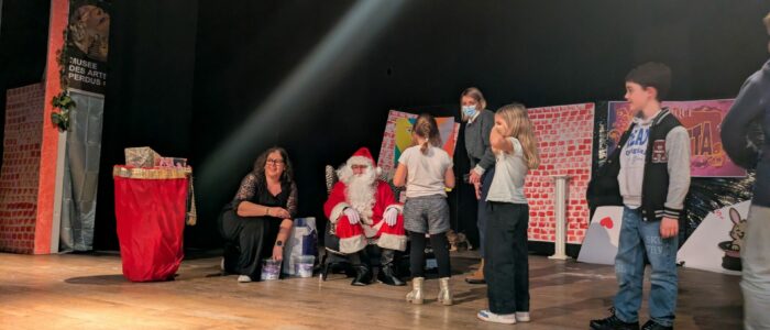 Au cours de l’entracte, le marché de Noël présentaient les bricolages des enfants. Après l’entracte, ce sont les enfants qui ont chanté avant l’arrivée du Père Noël tant attendu…