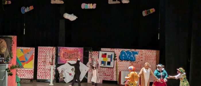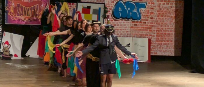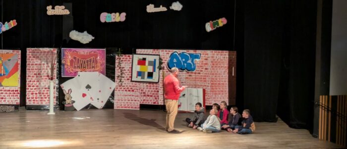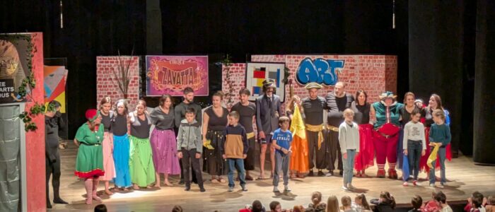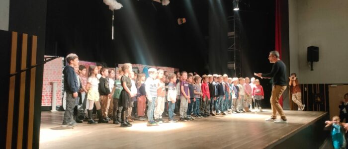 Dimanche 14 décembre, à l’Espace Culturel du Doué, les parents sont montés sur scène pour présenter un magnifique spectacle en lien avec le projet de l’école “Tous Artistes ! “.  Nous avons été transportés au Musée des Arts Perdus. La mission principale était de retrouver les couleurs perdues d’Elmer. Ce spectacle a permis d’aller à la découverte de toutes les formes d’art. Un grand merci à tous les parents qui se sont investis pour l’écriture de l’histoire, la création des décors, les costumes,  la mise en scène, le son et les lumières…