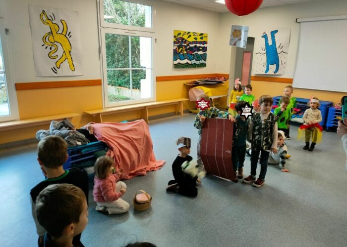 Ensuite, nous avons travaillé sur la littérature. Nous avons découvert des contes et appris à mieux les comprendre. Puis, avec l’aide d’Emilie, nous avons fait du théâtre ! Nous avons joué des histoires, utilisé notre corps, notre voix et nos émotions pour devenir de vrais petits comédiens.