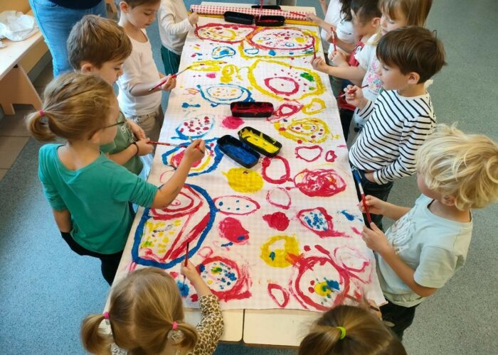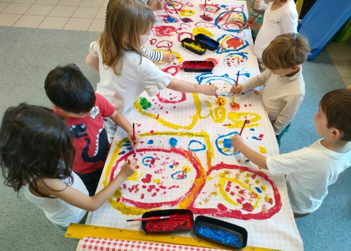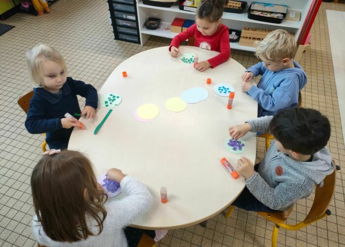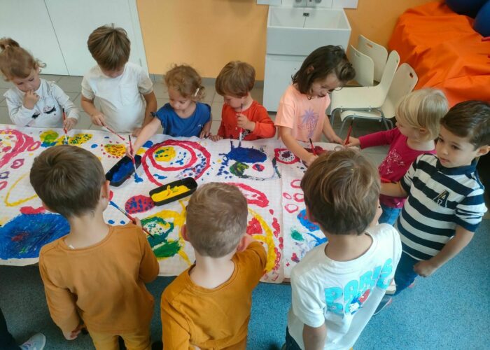 Au début de l’année, nous avons découvert la peinture. Nous avons testé différentes techniques, utilisé plein de couleurs et créé nos propres œuvres. Nous avons aimé expérimenter et laisser parler notre imagination.