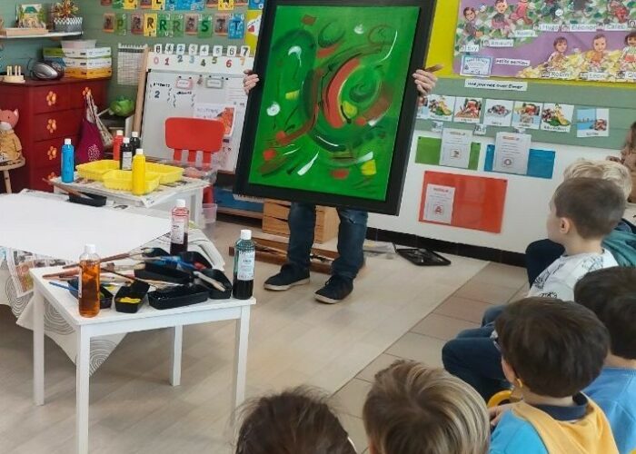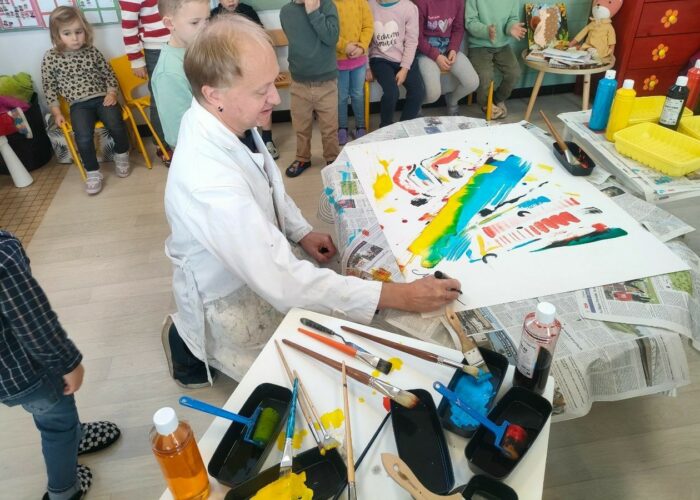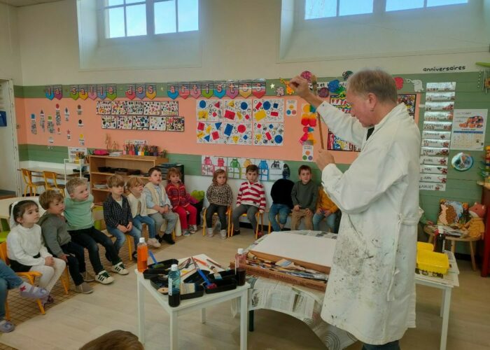 Nous avons aussi eu la chance d’accueillir un artiste dans notre classe : le papa d’Emiliano. Il est venu partager avec nous sa passion, nous montrer son travail et nous faire découvrir son univers artistique. C’était un moment très spécial pour nous !