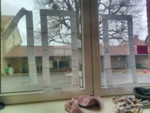 Puis DEFI n°2 : chercher la collection de la maîtresse … facile Emilie a pris 100 trombones pour écrire 100 sur la fenêtre.