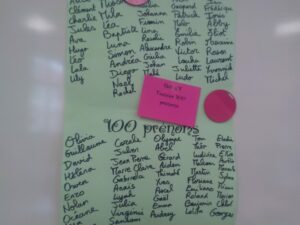 DEFI n°4 : écrire 100 prénoms (des copains, des copines, des papas, des mamans, des papis et des mamies, …)