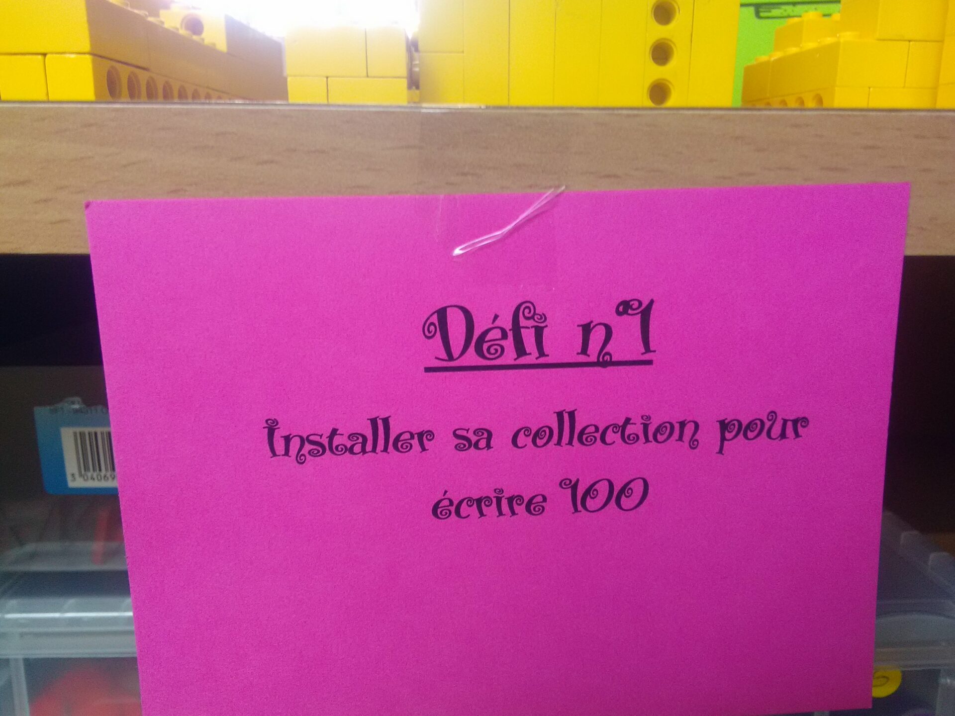 Puis DEFI n°2 : chercher la collection de la maîtresse … facile Emilie a pris 100 trombones pour écrire 100 sur la fenêtre.