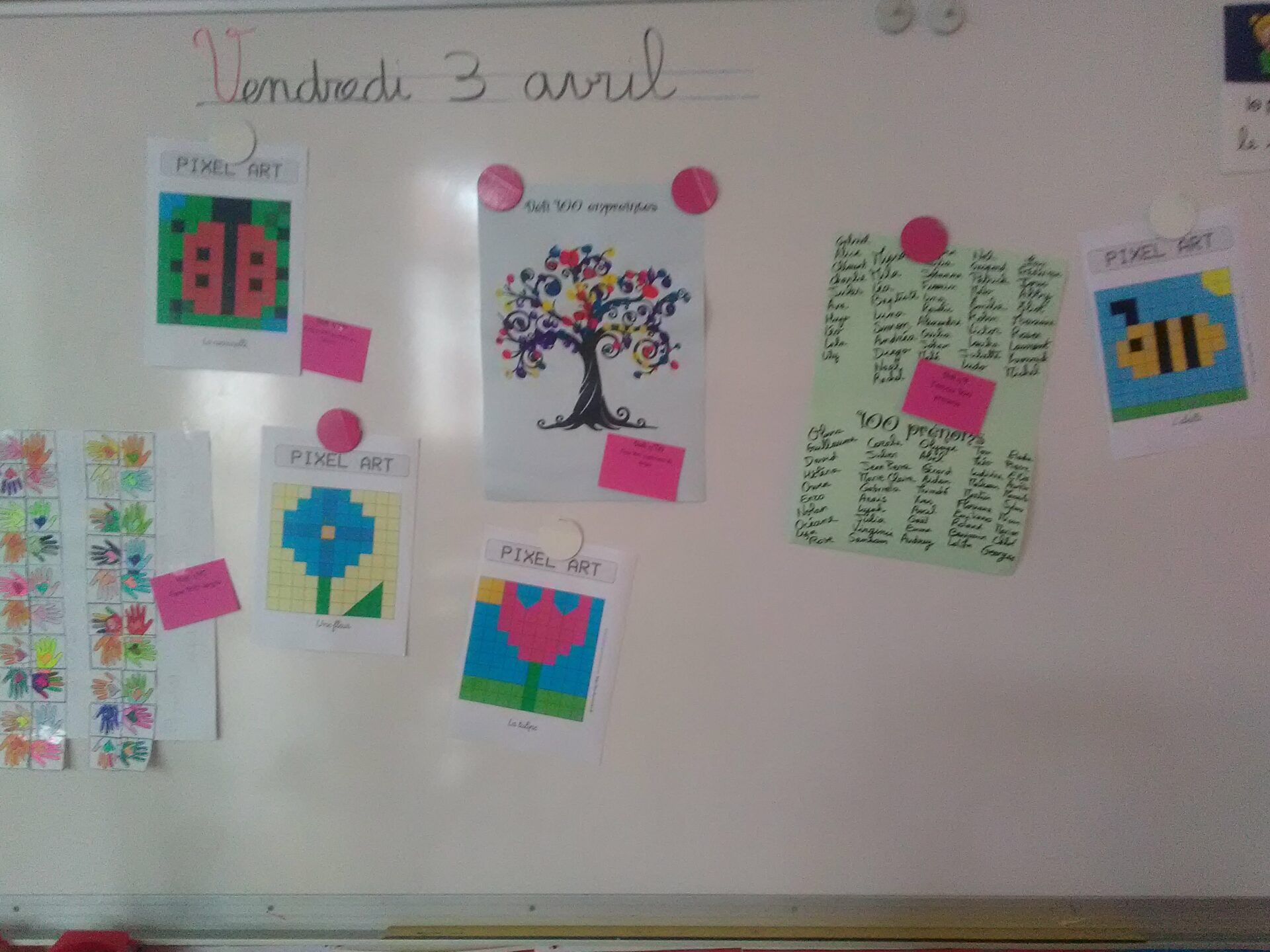 Vendredi 3 avril, c’est le 100ème jour d’école pour notre classe. Emilie a organisé 100 défis à réaliser dans la journée … Va-t-on réussir ????