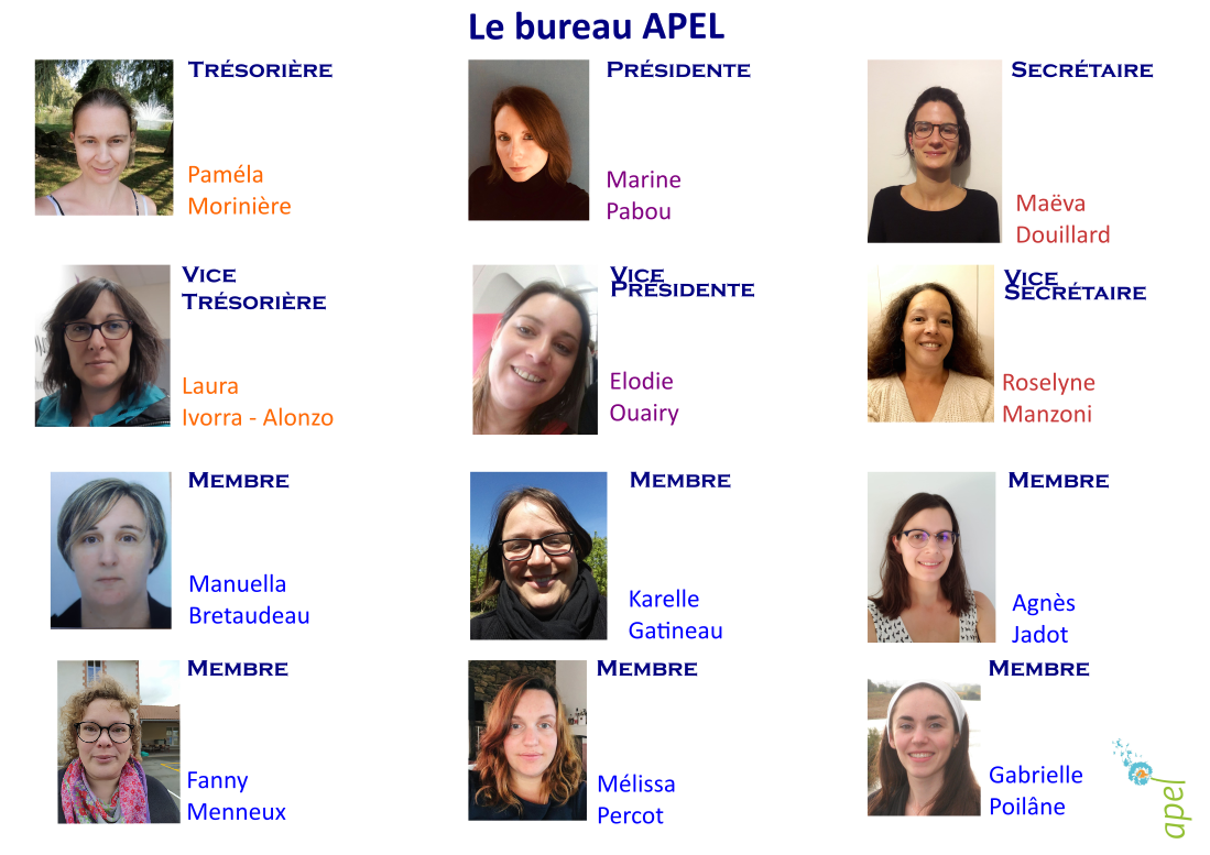 Voici les  membres APEL pour l’année scolaire 2021 – 2022 :
